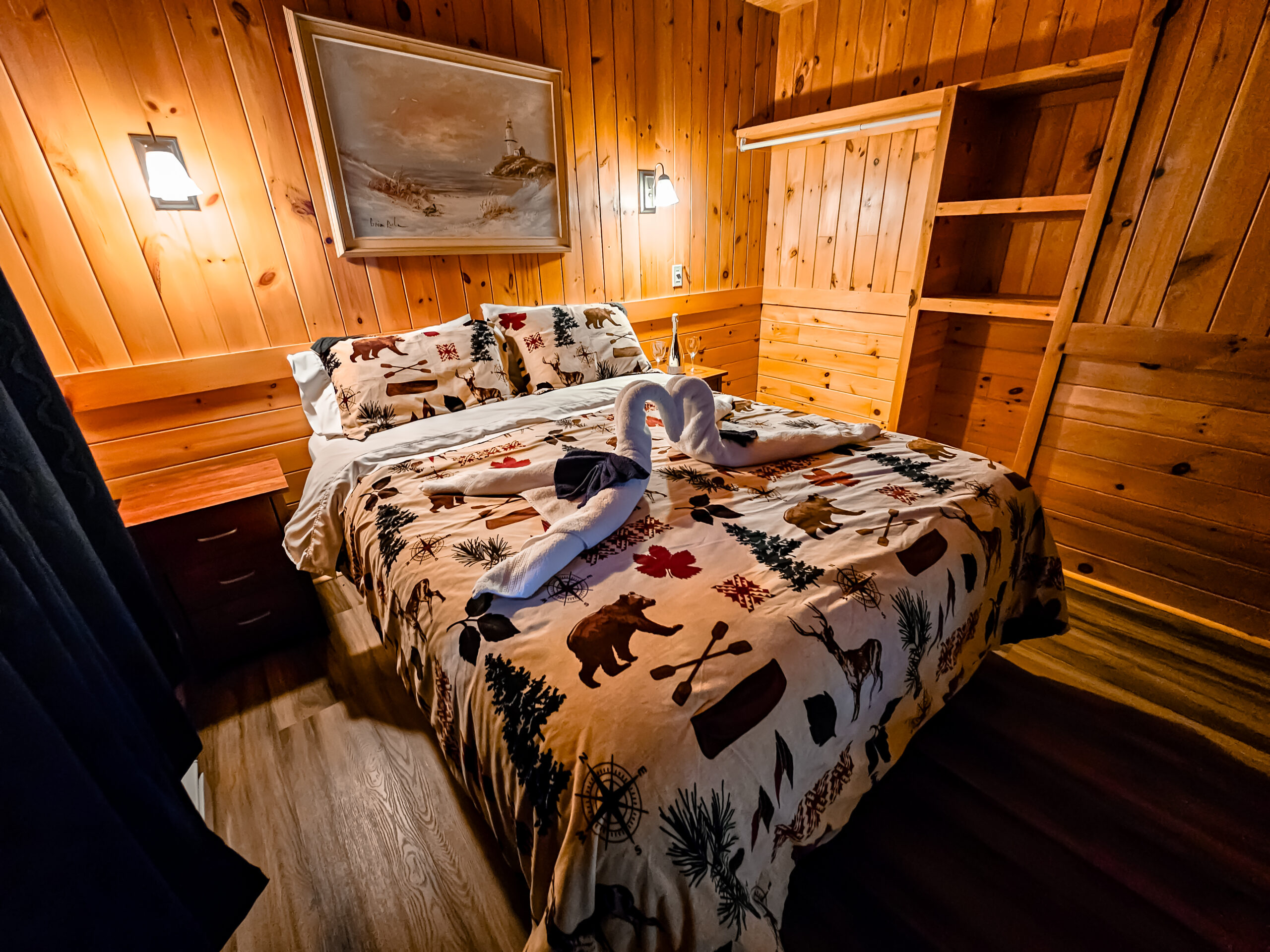 If you prefer to make your stay more permanent with us, our seasonal 2-bedroom cabins are a cozy retreat complete with a fully equipped kitchen, Fridge, stove, microwave, dishes, pots and pans. Shaw satellite TV and DVD player. A beautiful large deck with BBQ and picnic bench. With a fire pit below to enjoy at night.